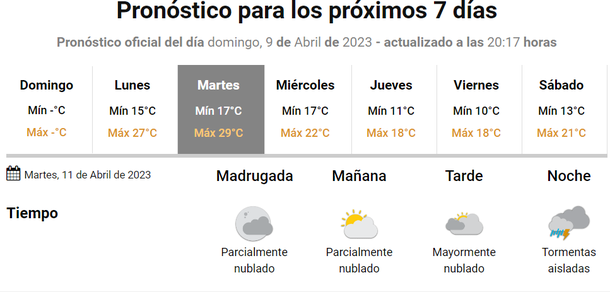 Pero ahora el Servicio Meteorológico Nacional indica que las lluvias llegarían el martes 11 de abril, por la noche.