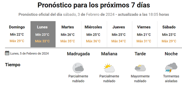 Por ahora, luego de las lluvias del jueves 8 de febrero de 2024 y el fin de semana de carnaval, algo de alivio llegará durante unos días pero el mes cerrará caluroso y marzo comenzará con altas temperaturas según indica el organismo oficial.
