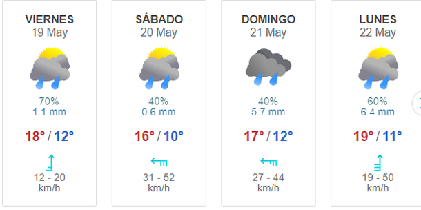 El lunes por la noche el tiempo mejoraría pero dos días después, el miércoles 24 de mayo otra vez se podrían producir chaparrones.