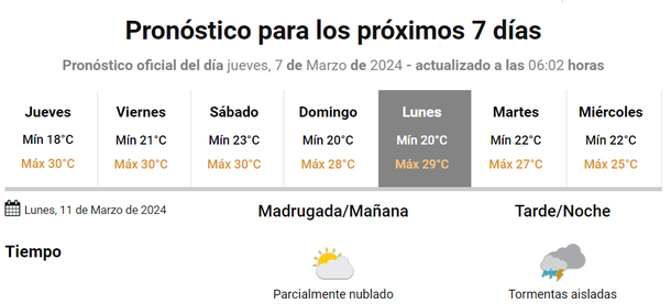 El domingo será un gran día, a pleno sol, con marcas térmicas altas, y se mantendrá el buen tiempo hasta el lunes por la noche, momento en que volverán las lluvias y se extenderán hasta el martes 12 de marzo.