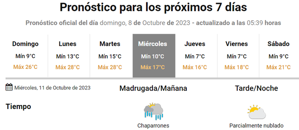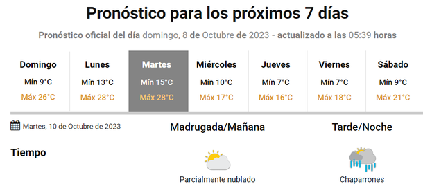 El primer día de lluvias será este martes 10 de octubre de 2023 y las precipitaciones se esperan en la tarde-noche, aunque luego del mediodía la jornada estará inestable.