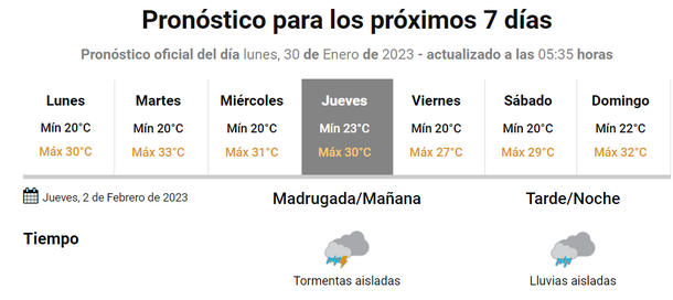 Por ahora hay lluvias previstas solo para la jornada del jueves, aunque el viernes y el sábado puede haber algunos momentos de inestabilidad con chaparrones dispersos, de esos que casi no llegan a mojar.