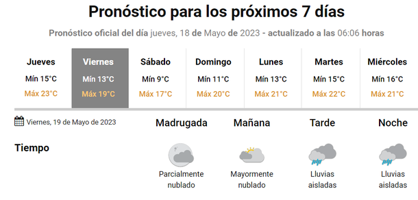 El Servicio Meteorológico Nacional (SMN) anuncia lluvias para este viernes en toda la zona del AMBA, algo que se podría mantener para el día siguiente, sábado 20 de mayo.
