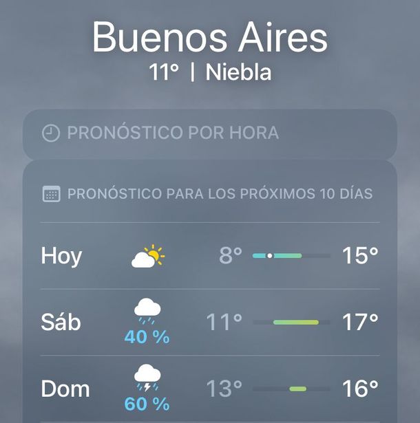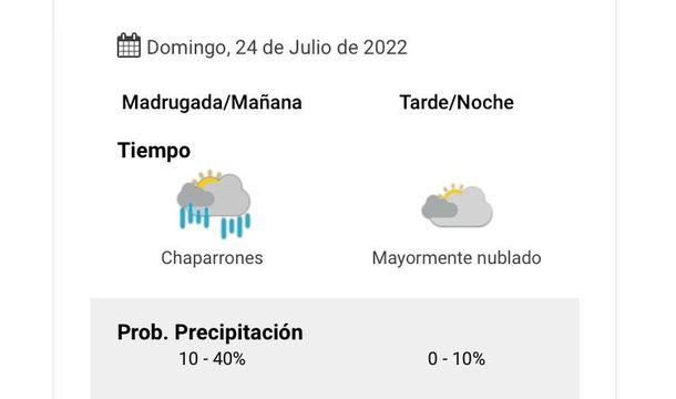 En tanto, para el domingo 24 el clima será similar, pero las chances precipitaciones son mayores y también las lluvias llegarían por la mañana.