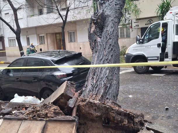 Tal como se pudo observar en las imágenes, las raíces del árbol provocaron la rotura completa de parte de la vereda de enfrente. En tanto, las ramas destrozaron por completo dos balcones.