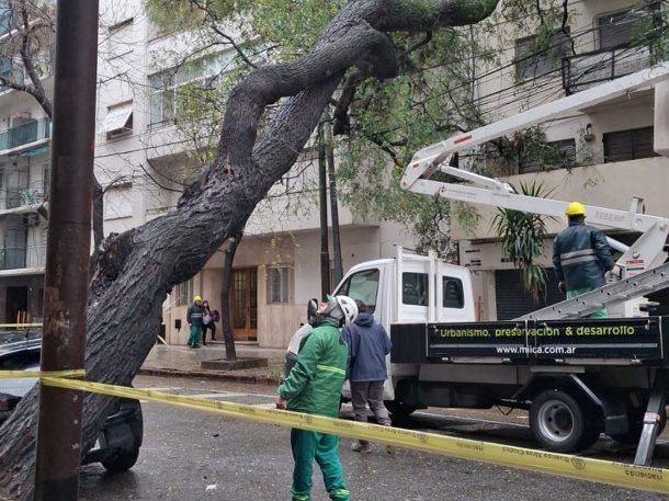 Pasadas las 10, personal de una empresa privada contratada por el Gobierno de la Ciudad comenzó a seccionar el árbol para poder retirar el tronco y las ramas del lugar.