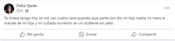 Los posteos de despedida a la familia que murió cuando volvía de un cumpleaños en Salto