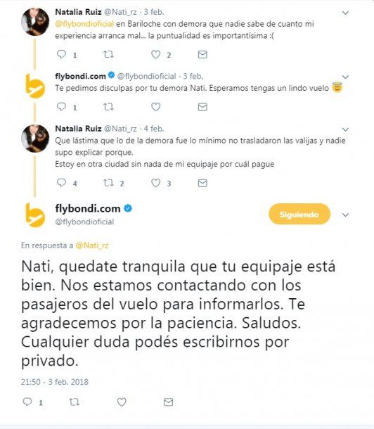 Los propios pasajeros se quejaron de lo ocurrido a través de las redes sociales y no lograron una respuesta concreta por parte de la empresa.