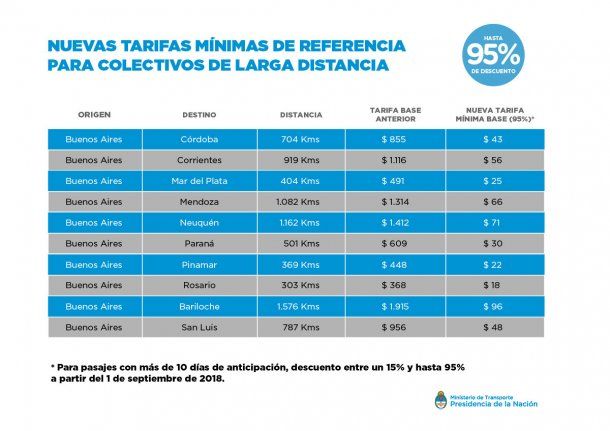 Otro efecto de la megadevaluación. A partir del 1 de septiembre los micros de larga distancia podían empezar a ofrecer descuentos de hasta el 95% en el precio de sus pasajes luego de que el Gobierno fijara el nuevo esquema de valores mínimos.
