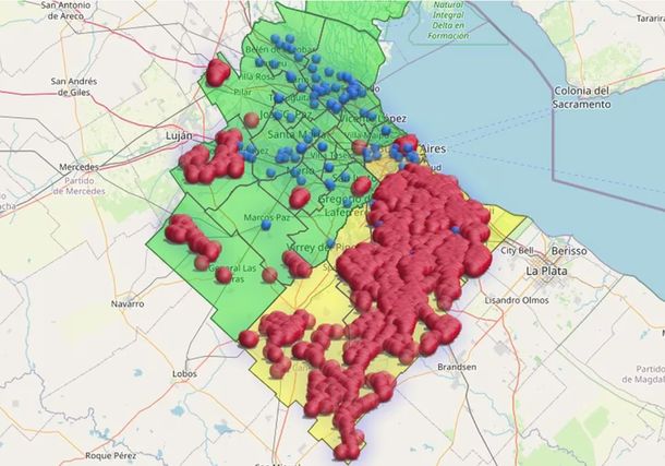 Gran parte del sur del Gran Buenos Aires y algunas localidades del norte son las principales zonas afectadas por la falta del suministro eléctrico.