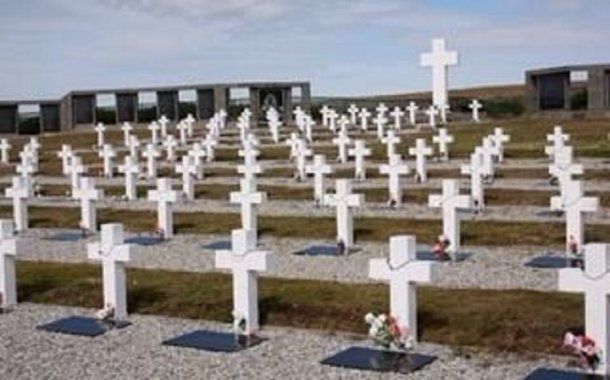 Apareció en un monumento que replica al cementerio de Darwin. Le agradece a los ex combatientes por haber defendido la tierra, dice que son héroes y que las Malvinas siguen siendo argentinas.