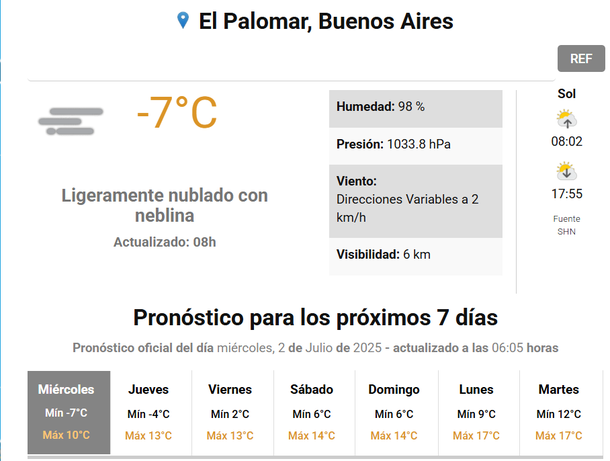 En la zona del AMBA el frío se está haciendo sentir, al punto que hoy la temperatura mínima llegó a los 7 grados bajo cero en la localidad de El Palomar, en el partido de Morón.