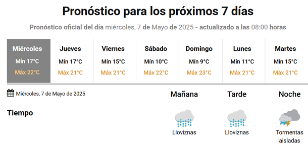 Este miércoles 7 de mayo de 2025 estará pasando por agua en la Ciudad de Buenos Aires y el conurbano bonaerense, una jornada que estará marcada por las lluvias y las tormentas, según anuncia el Servicio Meteorológico Nacional (SMN).