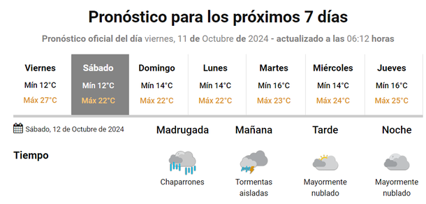 Las lluvias comenzarán durante la jornada del feriado de este sábado 12 octubre, jornada en la que se esperan algunas tormentas fuerte en horas de la mañana.