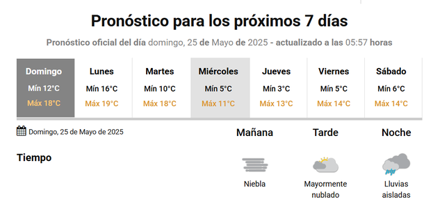 El Servicio Meteorológico Nacional (SMN) anuncia lluvias para la jornada de este domingo 25 de mayo en la Ciudad de Buenos Aires y el conurbano bonaerense, aunque recién llegarían hacia la noche.