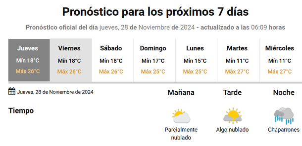 La mala noticia que dio a conocer en estas horas el organismo oficial es que las lluvias y las tormentas no serán solo parte de la jornada de hoy, si no que también se esperan precipitaciones durante este viernes 29 de noviembre.