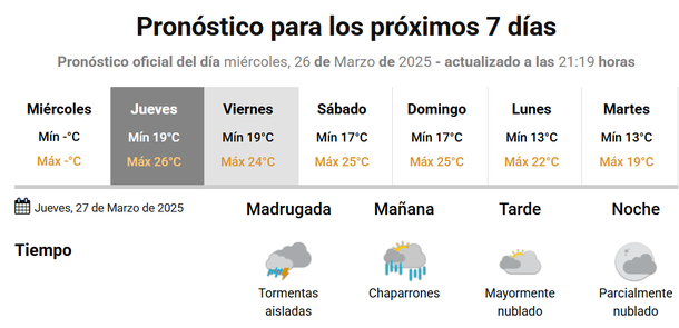 El tiempo mejorará el viernes al mediodía y no se esperan lluvias por lo menos hasta la noche del domingo, jornada que estará con el cielo nublado e inestable durante toda la jornada.