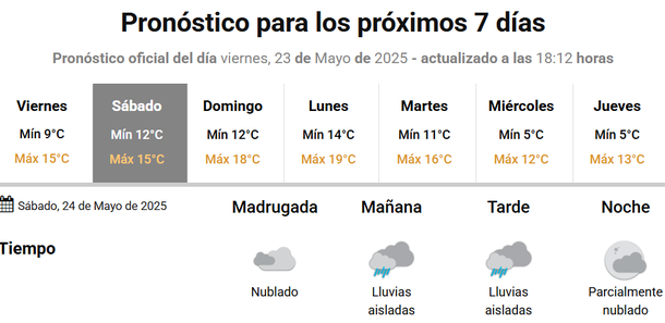 Las condiciones meteorológicas irán mejorando hacia la noche y ya para el domingo no hay chances de chaparrones, aunque la semana hábil que dará inicio al lunes 26 de mayo serán con lluvias y ahora si podrían ser fuertes.