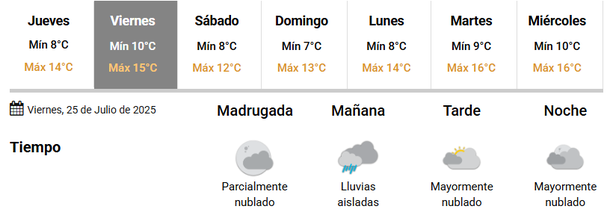 Por la tarde, las precipitaciones desistirán y el cielo permanecerá mayormente nublado, con temperaturas que oscilarán entre los 10 y 15 grados.