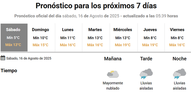 Las lluvias volverán a decir presente este sábado 16 de agosto en la Ciudad de Buenos Aires y el conurbano bonaerense según informó en las últimas horas el Servicio Meteorológico Nacional (SMN).