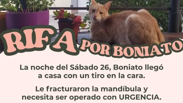 Mar del Plata: le balearon al gato en la trompa y vende una rifa para operarlo