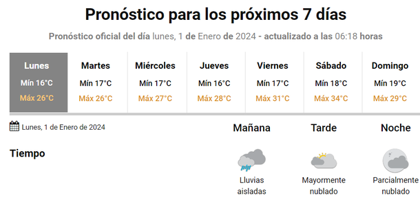 Para el primer día del año la ciudad de Mar del Plata tiene un pronóstico alentador aunque sin tanto sol: luego de las lluvias matinales subirán las marcas térmicas, llegando a los 26 grados ya sin tormentas y lo más importante, sin viento.