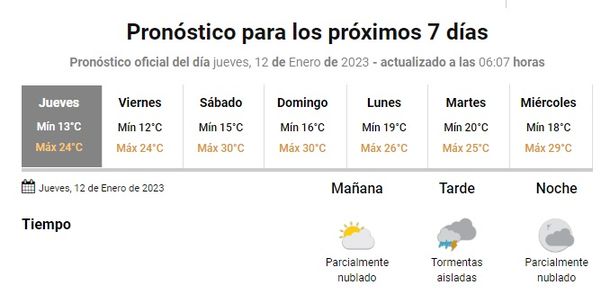 El Servicio Meteorológico Nacional (SMN) prevé para este jueves 12 de enero tormentas aisladas por la tarde, vientos fuertes del sur con ráfagas y una temperatura que irá de los 13 a los 24 grados en Mar del Plata.