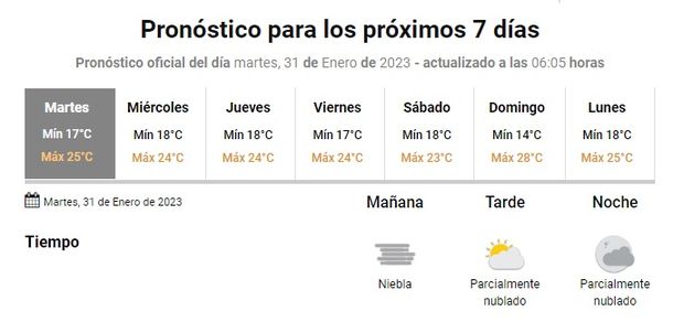 El Servicio Meteorológico Nacional (SMN) prevé para este martes 31 de enero cielo parcialmente nublado, vientos fuertes del sudeste con ráfagas y una temperatura que irá de los 17 a los 25 grados en Mar del Plata.