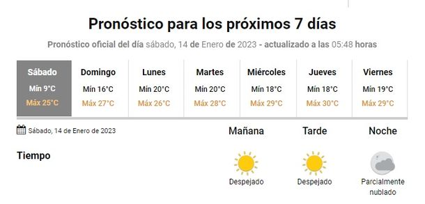 El Servicio Meteorológico Nacional (SMN) prevé para este sábado 14 de enero cielo mayormente despejado, vientos moderados a intenso de direcciones variables y una temperatura que irá de los 9 a los 25 grados en Mar del Plata.