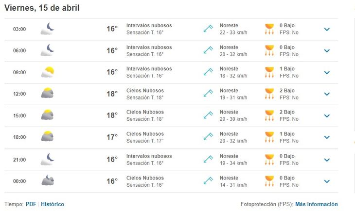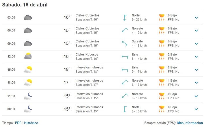 El sitio Meteored publicó el pronóstico del tiempo extendido para los cuatro días de Semana Santa se espera una mínima de 13 grados el domingo y una máxima de 20 ese mismo día.