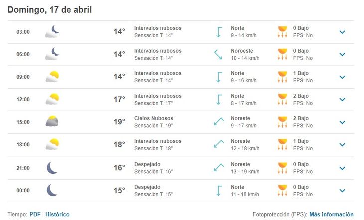 Para el jueves, se espera una máxima de 18 por la tarde con cielo nuboso. Por la noche refresca pero con cielo despejado.