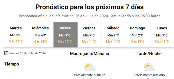 El jueves será el mejor día de la semana, con mucho sol pese a alguna presencia nubosa mientras que solo para el domingo hay algunas chances de lluvias, bajas por ahora, pero bajará la temperatura sin llegar al frío extremo.