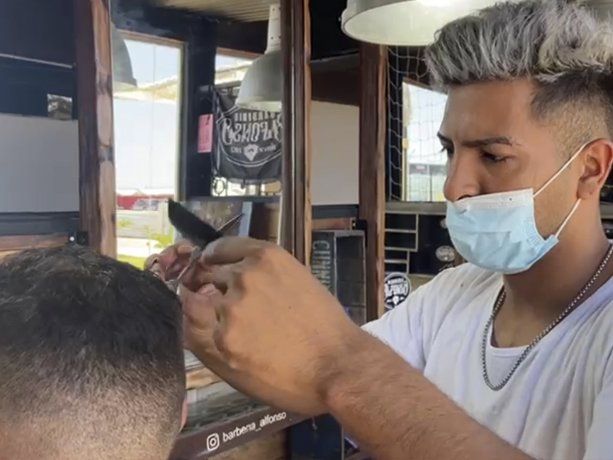 “A la gente le queda bien, para no tener que ir al centro, le queda cómodo, disfruta, pide su turno y se corta el pelo”, le contó a Minutouno.com Ezequiel, un verdadero artista de la tijera, la maquina y la navaja