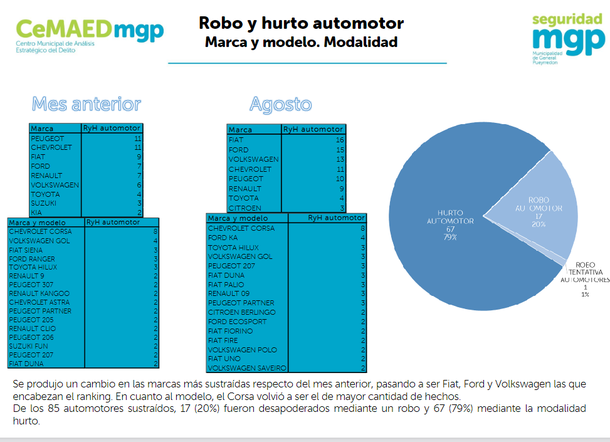 El municipio de General Pueyrredon, cuya ciudad cabecera es Mar del Plata, dio a conocer el informe de robo y hurto automotor de agosto de 2023, con un aumento importante comparada con el mes anterior y el año pasado.