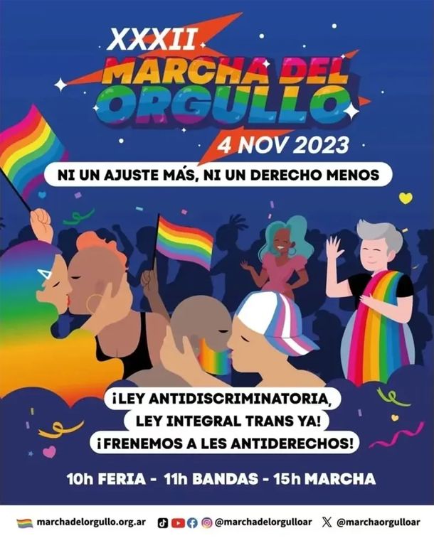Para este sábado está prevista la 32° edición de la Marcha del Orgullo, evento más importante de la comunidad LGBTIQ+ que como cada año desde 1992 se realiza en la Ciudad de Buenos Aires (con excepción de 2020, cuando la pandemia lo impidió) y en las principales ciudades del interior del país.