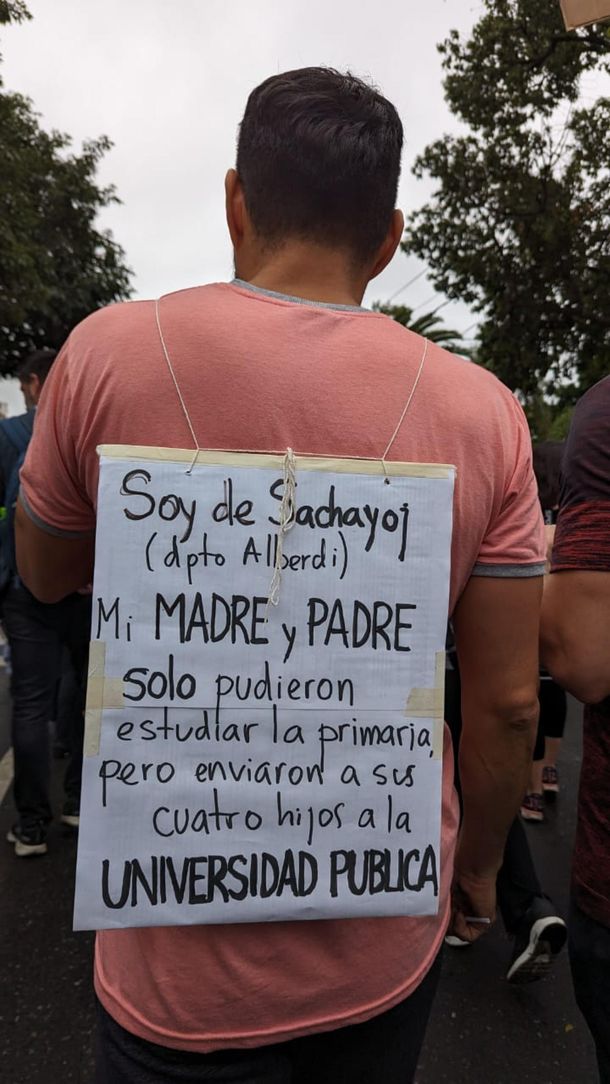 La llegada a las universidades públicas es clave para el desarrollo y avance de familias en todo el país, y así lo hicieron notar también en Santiago del Estero otros estudiantes que mostraron su historia de vida en un cartel que resaltó el verdadero valor de la educación pública gratuita y de calidad en todos los niveles de enseñanza.