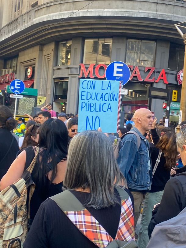 "UBA x mi hijo", declaraba por su parte un padre con su pequeño en los hombros durante la convocatoria en la Ciudad de Buenos Aires.