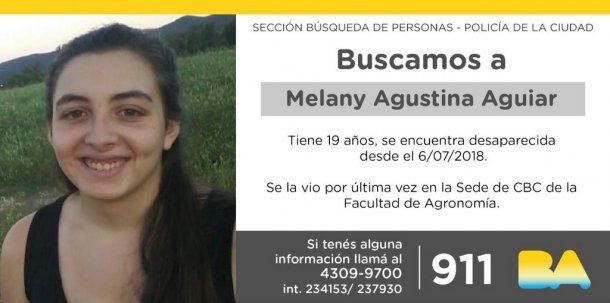La joven vive en el barrio porteño de Flores, tiene 19 años y vestía una campera gris hasta las rodillas, jean oscuro, zapatillas blancas, bufanda negra y mochila roja y negra.