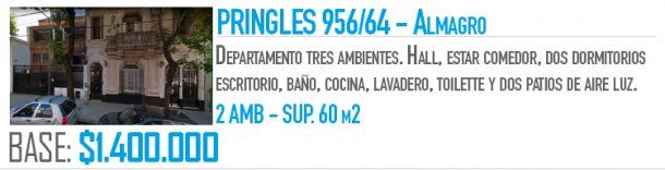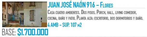 Entre las propiedades que saldrán a remate hay una casa de dos pisos en Flores, una de tres dormitorios en Monte Castro, varios departamentos de dos ambientes y hasta 3/84 partes de una unidad.