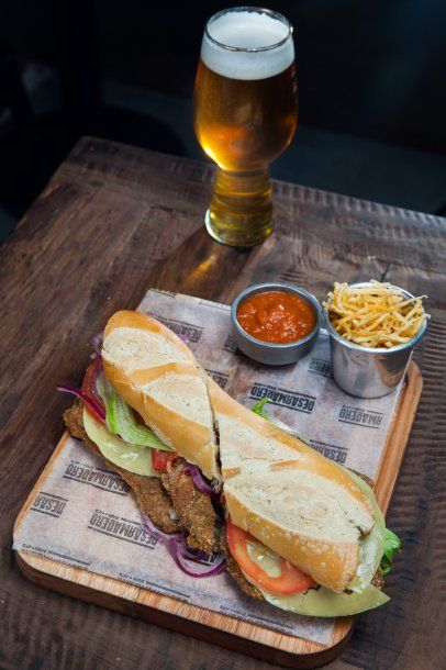 Desarmadero y Desarmadero Session, su nuevo local en la esquina de enfrente con una propuesta de cocina “rutera”, proponen acompañar cervezas artesanales con un sándwich de milanesa. En ambos locales se pueden degustar dos opciones similares pero diferentes: en Desarmadero, el sándwich de milanesa “especial” ($220) lleva una milanesa de nalga con queso sardo, papas pay, huevo frito y lechuga fresca. Cruzando la vereda, en Desarmadero Session se ofrece una alternativa igual de sabrosa y contundente pero un tanto más liviana, también con milanesa de nalga y queso sardo, pero con tomate, cebolla y lechuga, en pan francés ($220).