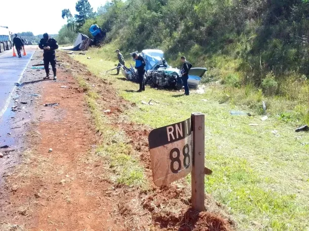 Fuentes policiales confirmaron que se trató de un Peugeot 408, con la patente dominio AC628EX, que era conducido por un hombre mayor de edad, identificado como Ernesto L. El automóvil circulaba en sentido a Oberá y por razones que se desconocen impactó contra un camión Scania, patente FXG 863, con acoplado cargado con 29 mil kilos de maíz. El transporte de carga era conducido por un joven de 24 años, quien fue identificado como Cristian Orlando L., y un segundo tripulante que acompañaba al conductor quien fuera identificado como Rodolfo Edvino L., de 56 años.