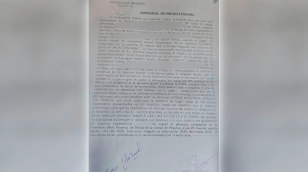 El lugar es muy transitado durante los sábados a la noche. La damnificada por el choque damnificada es una docente que había ido al lugar acompañada de su hija, una amiga y la mamá. Tras el hecho, realizó la denuncia policial en la Seccional Primera donde relató los hechos y reclamó el pago de los daños.