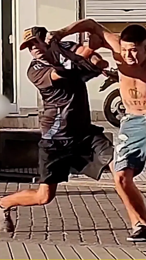 La situación escaló rápidamente cuando uno de los vendedores, al sentirse superado, levantó una baldosa con ambas manos intentando impactar en la cabeza del boxeador, quien se defendió con patadas mientras su oponente lo sujetaba de la remera. Durante casi dos minutos, la pelea continuó sin que la policía interviniera. Un empleado municipal presente solo les pidió que se calmaran, sin mediar acción alguna.