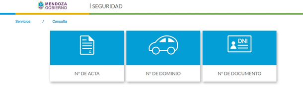 A través de la página podes consultar multas realizadas por la provincia de Mendoza y abonarlas. Las consultas se pueden hacer por el Documento Nacional de Identidad, el Dominio del auto o por el número de la infracción para pagar.