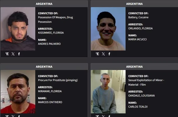 El Departamento de Seguridad Nacional (DHS) de Estados Unidos difundió nombre y fotos de “los peores delincuentes extranjeros” que fueron arrestados por el Servicio de Inmigración y Control de Aduanas (ICE) en los últimos meses. La lista incluye a nueve ciudadanos argentinos.