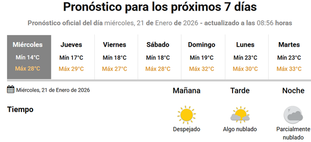 En términos estadísticos, la temperatura promedio del agua de mar en enero es de 20,4°C, con una mínima de 18°C y una máxima de 23,5°C, por lo que los valores actuales se ubican dentro del rango más confortable para el disfrute turístico.