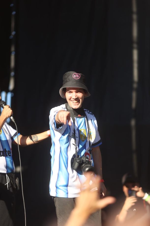 El fotógrafo llegó sonriente, con su cámara, una camiseta argentina y un piluso con las iniciales CFK, acompañado por su padre. En una jornada cargada de emoción, fue presentado, subió al escenario, saludó a la multitud, que celebró su asombrosa recuperación; y volvió a desplegar su arte: sacar fotos.