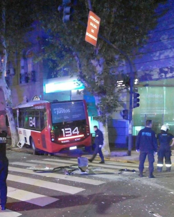 En el choque de anoche a las 22:25, el colectivo de la línea 134 "quedó impactado contra un comercio" y también "fue impactado un vehículo particular" que estaba estacionado, aunque "sus ocupantes se encuentran ilesos".