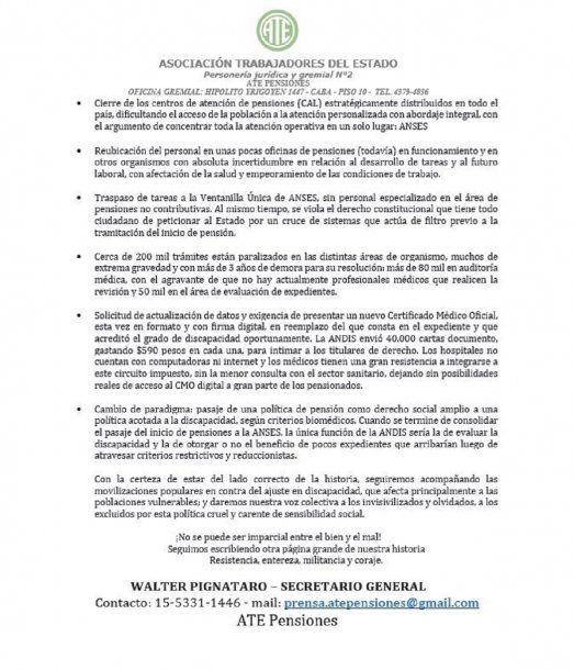 Trabajadores de ATE denuncian tres años de vaciamiento del sistema de pensiones