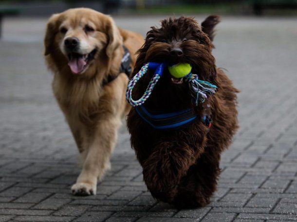 Titán, un golden retriever, y Brownie, un australian labradoodle, integrantes del Programa Perros de Asistencia Judicial de la Ciudad Autónoma de Buenos Aires (CABA) acompañaron a más de 300 niñas, niños y adolescentes a declarar como víctimas de delitos.